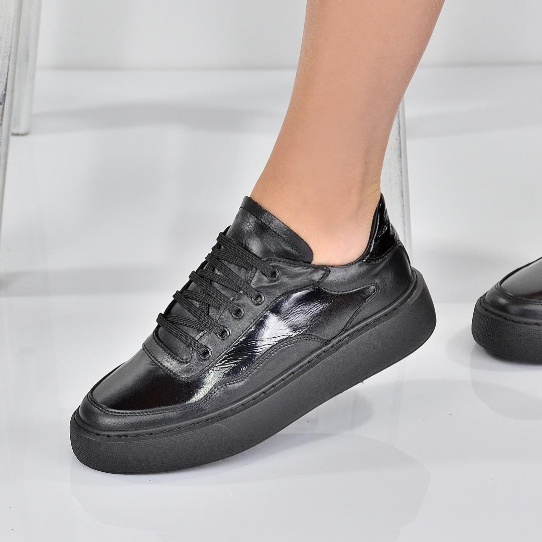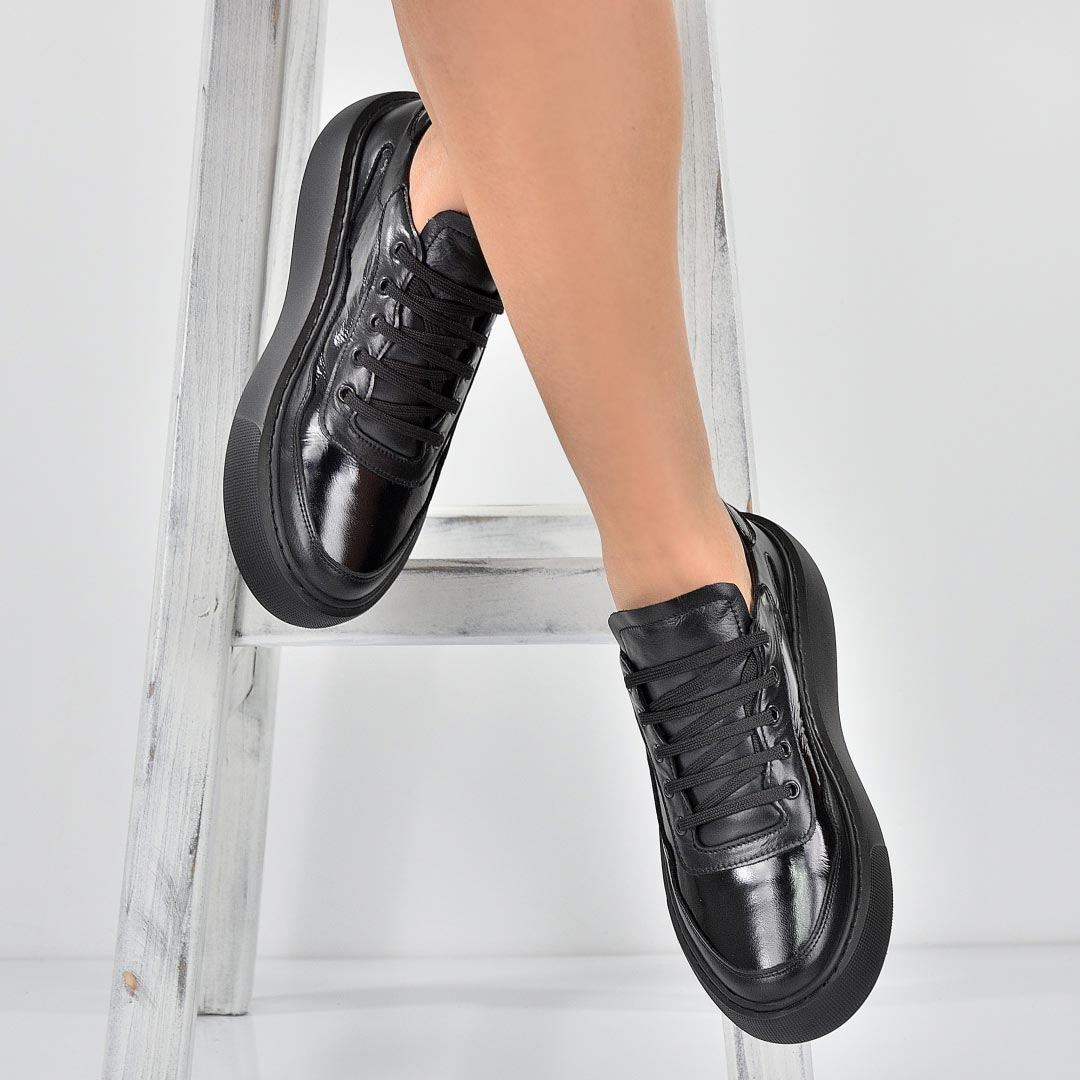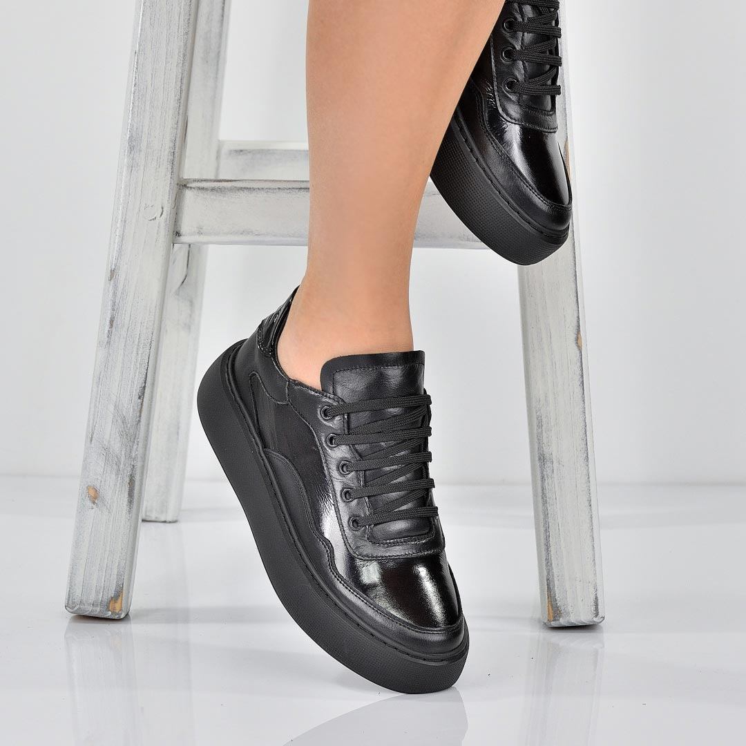Дамски кецове Lena black lak са много удобни кецове в черен цвят изработени от естествена кожа в комбинация с естествен лак. Естествен хастар и мека стелка от естествена кожа с антибактериален пенолатекс за мекота и удобство. Ходилото е от лек полиуретан, с което ще стъпвате много удобно върху всякакви повърхности и за по-голяма сигурност ходилото е шито. Закопчаването към крака е посредством връзки. Спокойно може да комбинирате тези кецове с всякакви дрехи защото черният цвят се комбинира почти с всичко и са подходящи за есенния сезон. Пристигат при вас с преглед и тест преди да платите с избран от вас куриер на следващия работен ден.