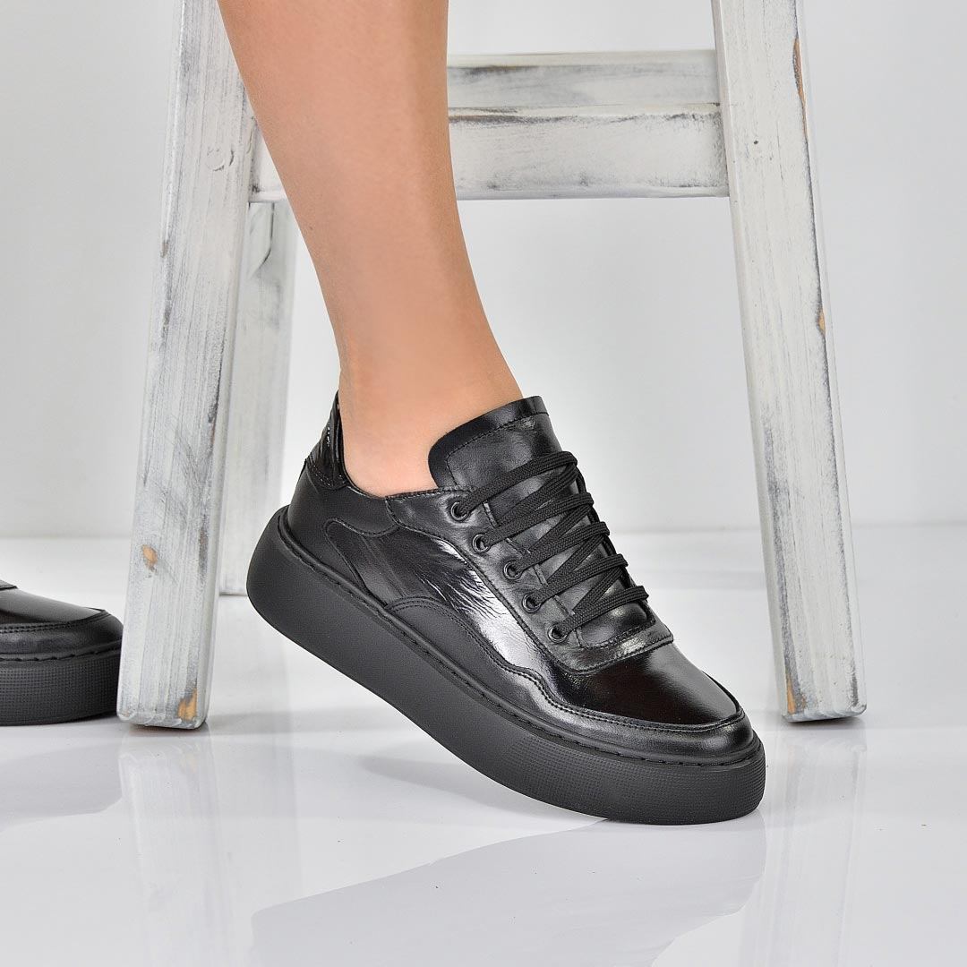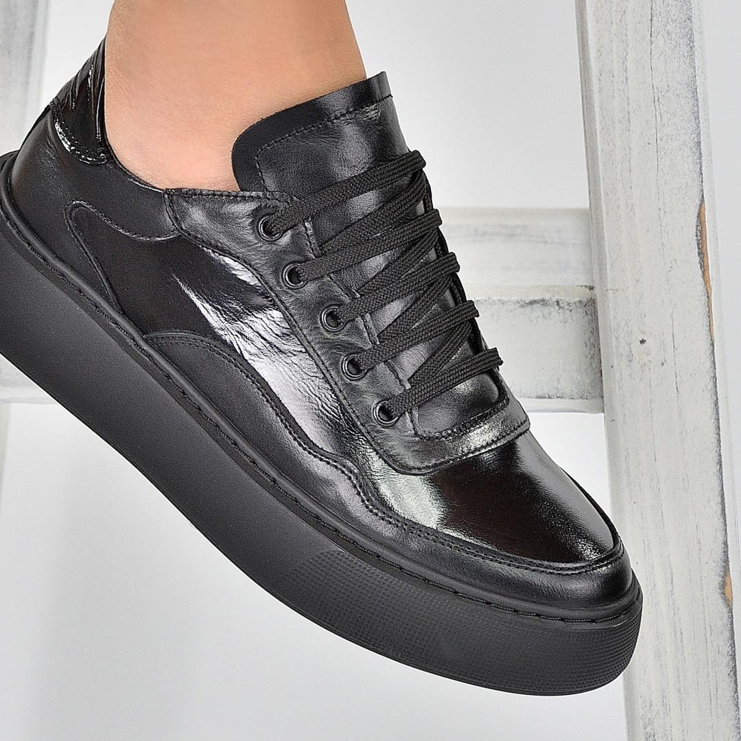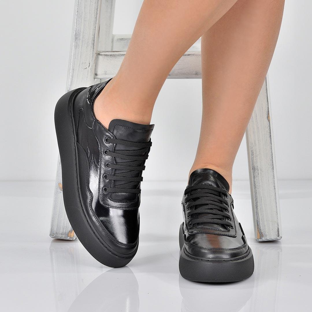 Дамски кецове Lena black lak са много удобни кецове в черен цвят изработени от естествена кожа в комбинация с естествен лак. Естествен хастар и мека стелка от естествена кожа с антибактериален пенолатекс за мекота и удобство. Ходилото е от лек полиуретан, с което ще стъпвате много удобно върху всякакви повърхности и за по-голяма сигурност ходилото е шито. Закопчаването към крака е посредством връзки. Спокойно може да комбинирате тези кецове с всякакви дрехи защото черният цвят се комбинира почти с всичко и са подходящи за есенния сезон. Пристигат при вас с преглед и тест преди да платите с избран от вас куриер на следващия работен ден.